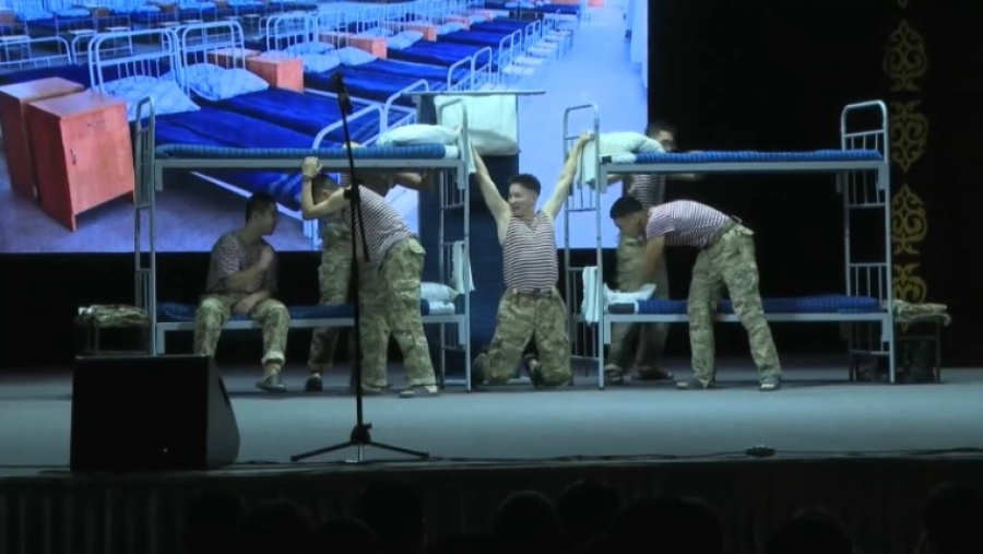 В Усть-Каменогорске открыли первый военный театр в Казахстане, передает «24KZ». Свой дебютный спектакль «Ант» поставили солдаты Нацгвардии – воинской части 5518 Регионального командования «Шығыс». Причём в творческой группе не только новички. Режиссёром постановки стал солдат-срочник Рамазан Омирзаков – профессиональный актёр театра и кино. Идея создать творческий коллектив в воинской части 5518 возникла неслучайно. В рядах военнослужащих оказался выпускник Академии имени Жургенова, молодой актёр Рамазан Омирзаков. Он уже успел поработать в театре драмы имени Ауэзова, сыграть в сериалах «Бажалар», «Саке» и даже основал театр в Туркестане. Поэтому именно он сегодня в главной роли и он же режиссёр-постановщик, а вот сценарий общий. Рамазан Омирзаков, военнослужащий: - Мы сами, солдаты, сели и подумали над идеей и сценарием, провели кастинг. Сначала отобрали тех, у кого есть творческие наклонности, и дали им полную свободу, чтобы они рассказали о себе, своей жизни в армии и до неё, без пр