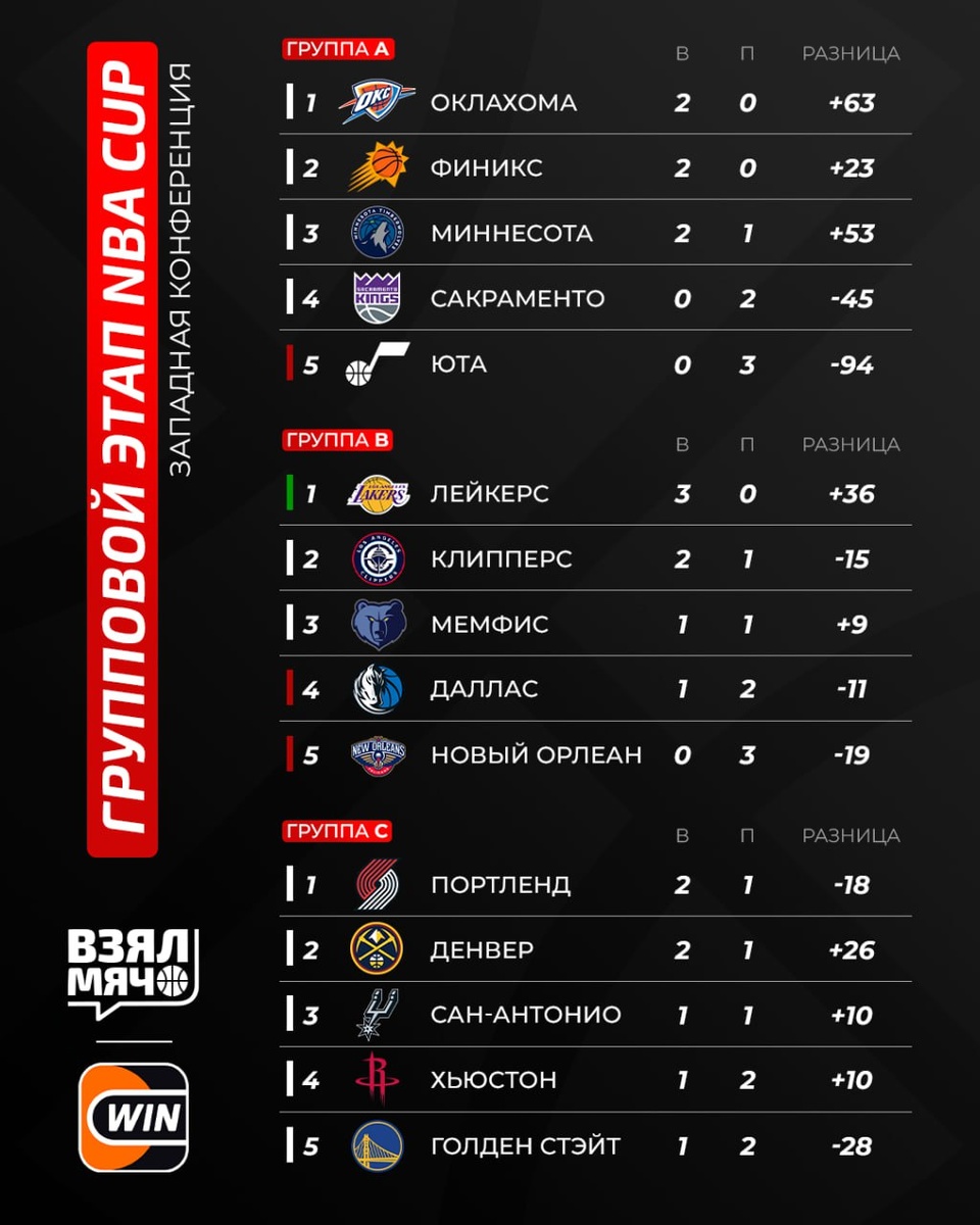 🏀 Турнирная таблица Кубка НБА «Торонто» и «Лейкерс» гарантировали себе место в плей-офф, а «Индиана», «Юта», «Даллас», «Новый Орлеан» и «Филадельфия» лишились возможности пройти дальше. На каком месте ваша любимая команда? А кто удивил вас больше всего? Пишите в комментариях 👇🏻 Смотрим Кубок НБА сегодня ночью вместе на Взял Мяч! 🏀 ПОДПИШИСЬ — ЗДЕСЬ ЖИВЁТ БАСКЕТБОЛ!