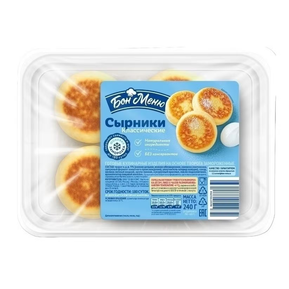 Зашло? Найти сырники БОН МЕНЮ классические можно в Чижике, на Озоне (там они около 199₽ за упаковку), в разных доставках. Цена скачет от 200 до 270 рублей, так что ловите акции!