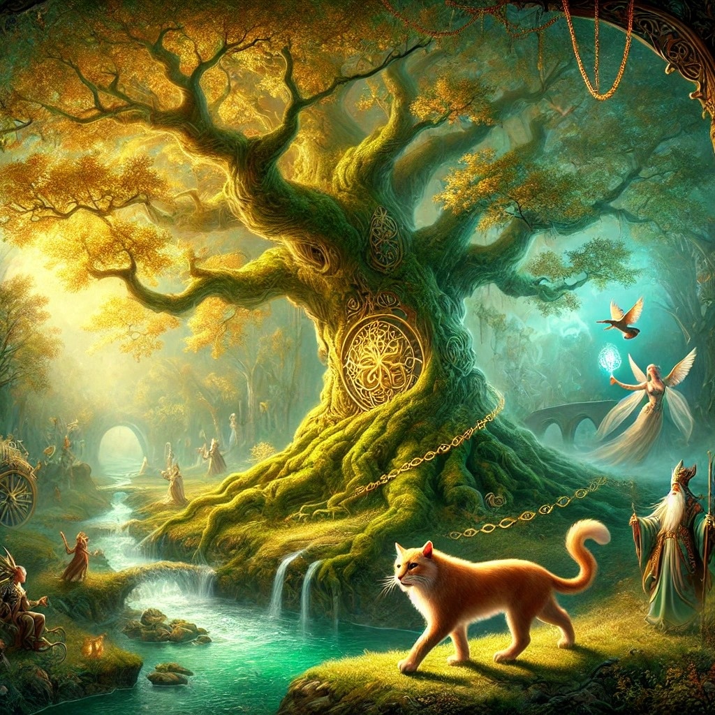 "У лукоморья дуб зелёный, кот поёт, как соловей весёлый! Сердце бьётся, мир цветёт!",