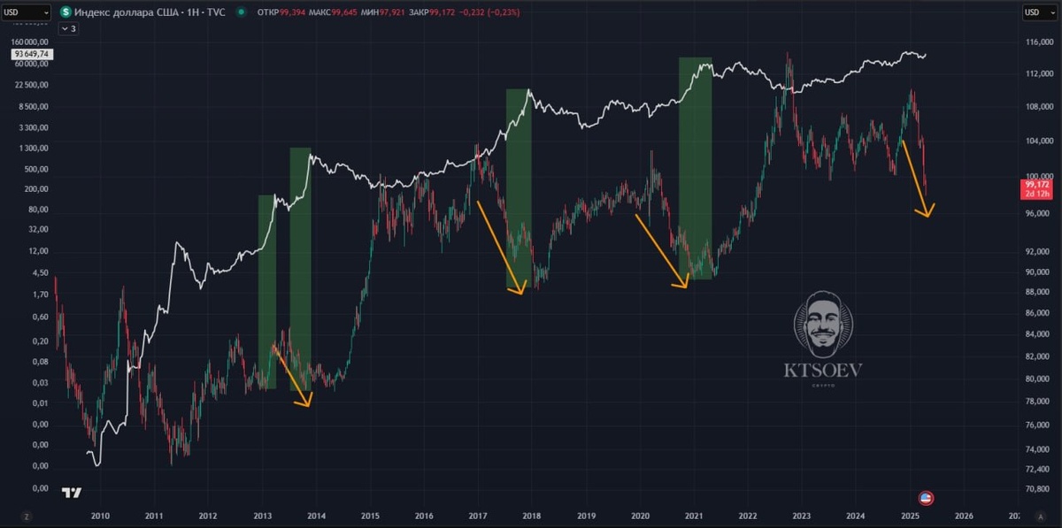 🆒 Как доллар влияет на криптовалюту. Анализ DXY vs Bitcoin. (Пост от 26.04.25)
