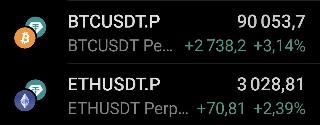 😉 #BTC > $90 000 #ETH > $3000 Пора выставлять защитные стопы в плюс 💰