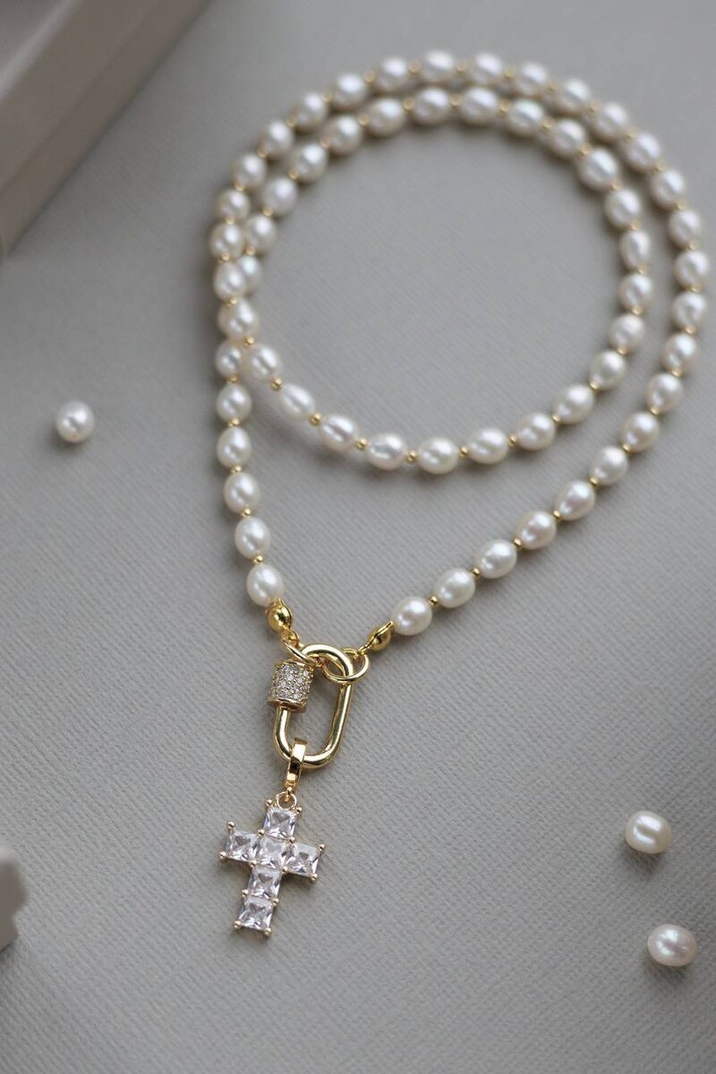Новинка✨ Колье из жемчуга с крестиком Артикул: 0235