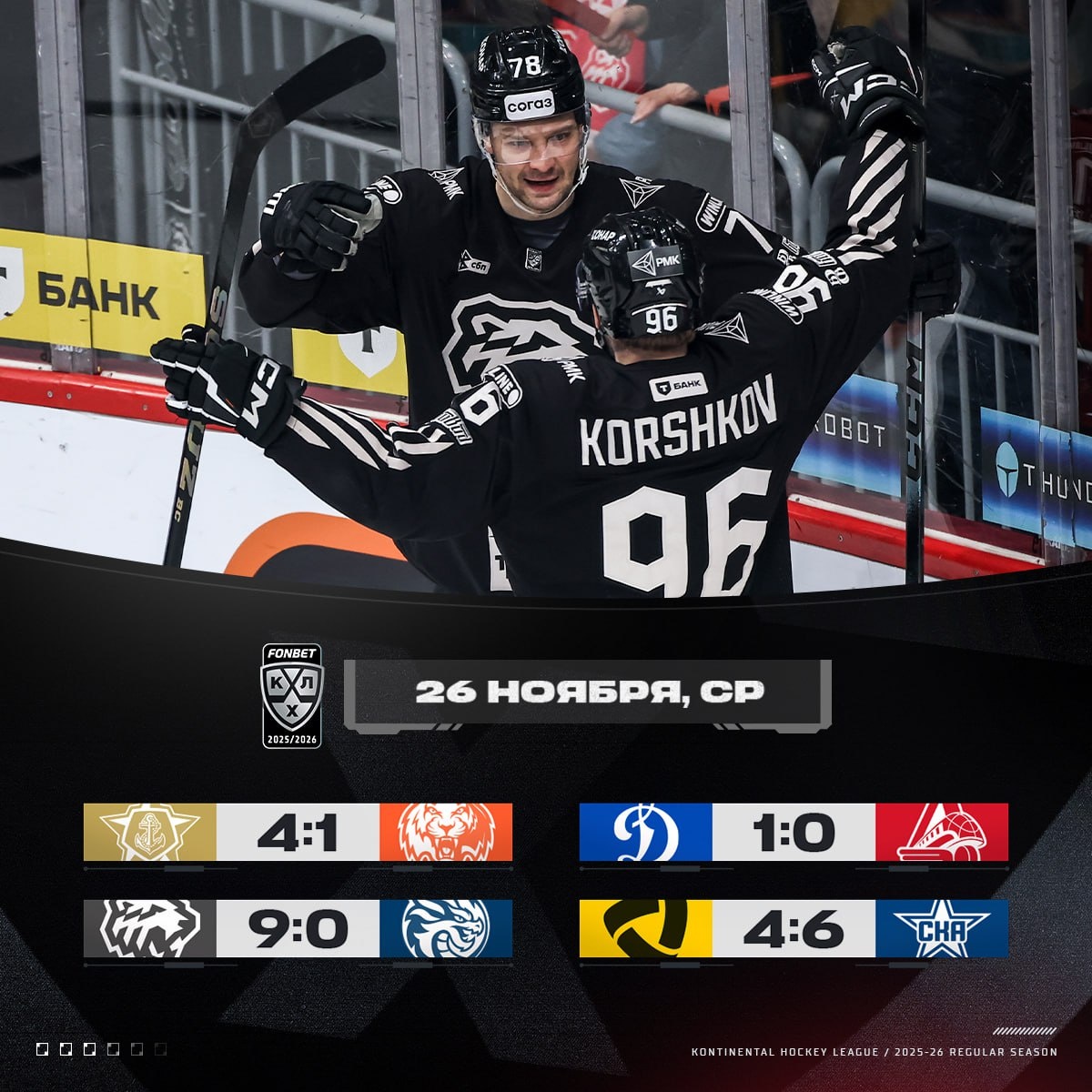 «Трактор» зарядил девять шайб, «Адмирал» выиграл #ДВдерби, СКА остановил «Северсталь». 📹 Обзоры на YouTube 📺 Обзоры на RuTube 💬 Обзоры в ВК #ФонбетКХЛ