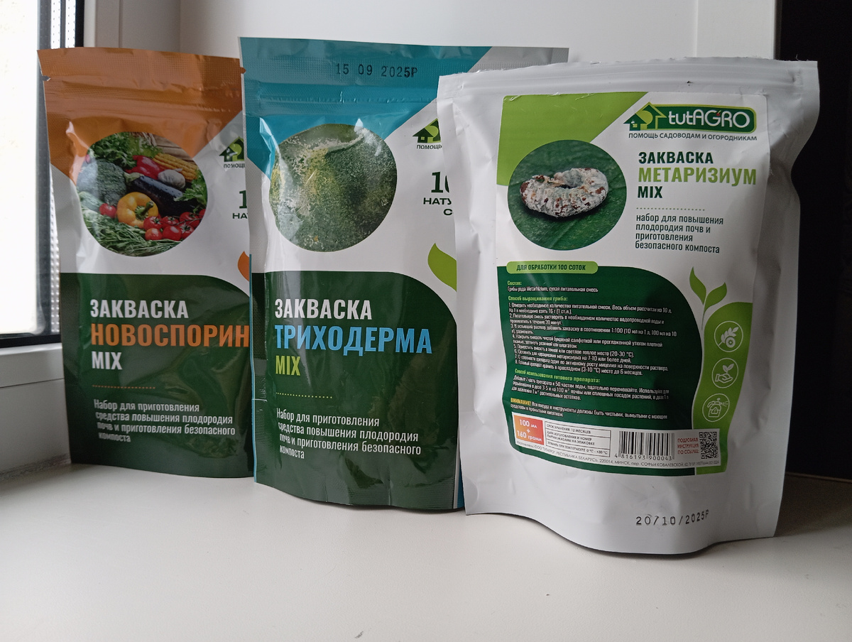 Здравствуйте, уважаемые подписчики и гости моего канала! Сегодня хочу рассказать о своем новом приобретении. Совсем недавно я рассказывал, что вот уже два года с успехом пользуюсь закваской Триходерма MIX от tutAGRO. Статья мне, кстати, и напомнила, что пора бы купить еще пакетик закваски. Решил вновь заказать на Вайлдберриз. Во время поиска выяснилось, что у компании уже целая линейка подобных заквасок. В результате вместо одного пакета я заказал три. К закваске Триходерма MIX, добавились Новоспорин MIX - это закваска штаммов Сенной палочки и Метаризиум MIX - препарат, содержащий мицелий и споры энтомопатогенного гриба Metarhizium. Пакеты с Триходермой и Сенной палочкой я убрал в холодильник до начала сезона, а вот Метаризиум мне нужен уже сейчас. Поэтому давайте его вскроем и посмотрим, что там внутри.