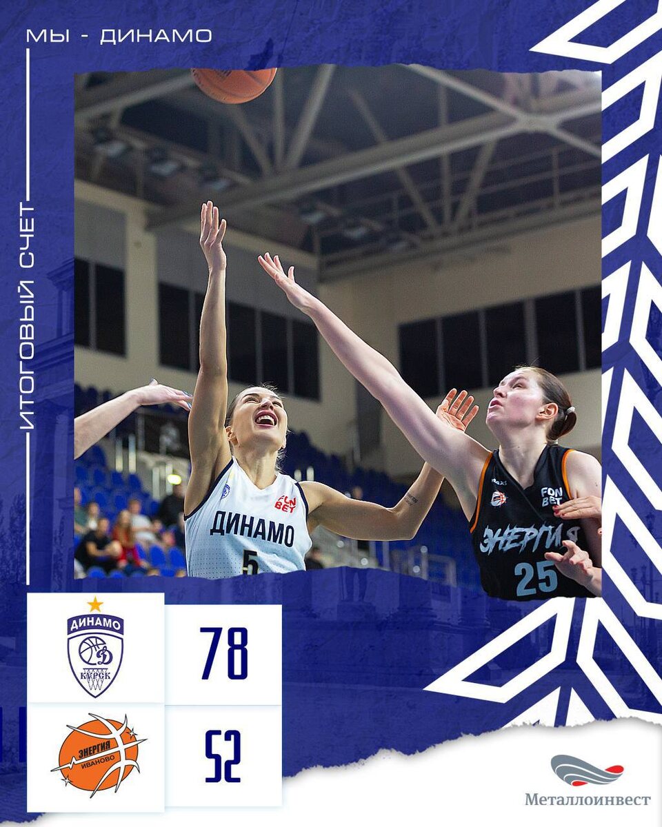Курские баскетболистки разгромили ивановскую «Энергию» 78:52 Завершился очередной матч ФОНБЕТ Премьер-лиги, в котором курские баскетболистки принимали соперниц из ивановской «Энергии». Впрочем, по настоящему энергичными гостьи показали себя лишь в последней четверти матча. Им даже удалось в эту десятиминутку набрать больше очков, чем им накидали хозяйки. Однако, эта победа была единственной и никак уже не могла повлиять на результат. Команда «Динамо Курск» одержала девятую подряд победу в регулярном чемпионате. Итог матча «Динамо» (Курск) — «Энергия» (Иваново) — 78:52 (25:16, 19:5, 20:11, 14:20). © тг-канал БК «Динамо Курск»
