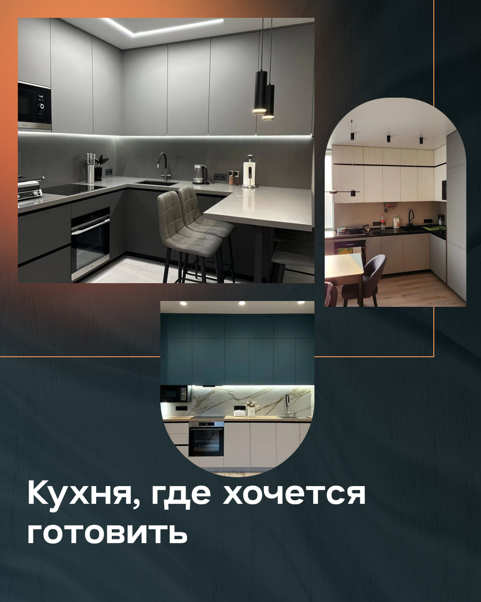 Есть кухни, на которых просто готовят. А есть кухни, на которых хочется жить. На такой хочется пить утренний кофе, слушать любимую музыку, раскладывать покупки так, чтобы всё было на своих местах. На такой хочется ставить пирог на подоконник, болтать с близкими, встречать гостей и возвращаться снова и снова. 💗 Именно такие кухни мы создаём. Мы верим, что хорошая кухня — это не про тренды, модные названия или сложные дизайнерские решения. Хорошая кухня — это про ощущение дома. Про детали, которые работают безупречно и делают каждодневные моменты приятными: ✔️ выдвижные ящики, которые открываются мягко и плавно