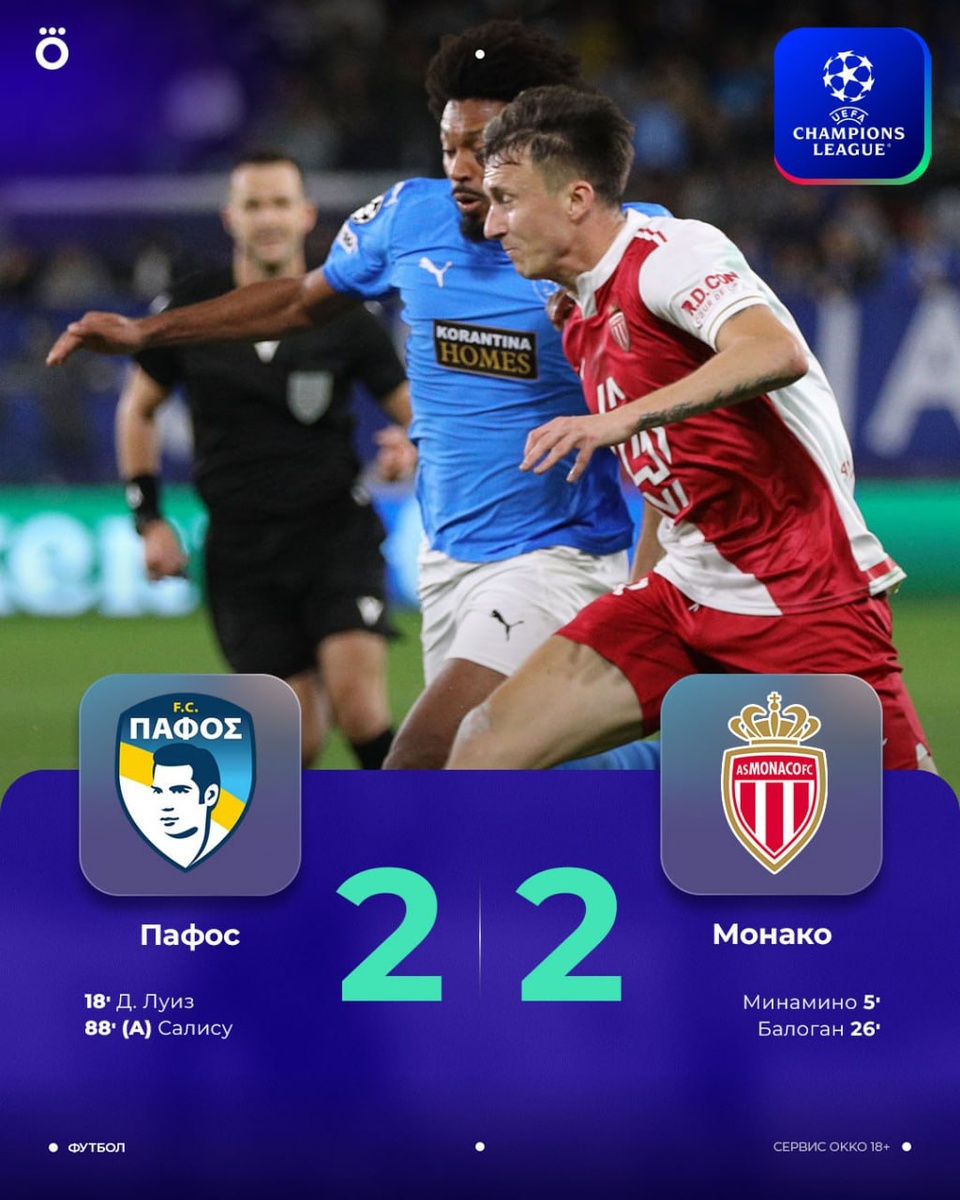 Легкой прогулки у «Монако» на Кипре сегодня не получилось — «Пафос» во главе с нестареющим Давидом Луизом бился до последнего 💪🏻