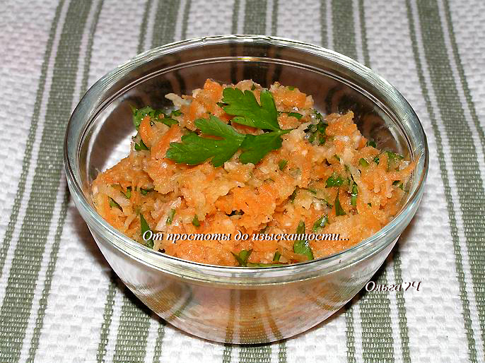 петрушка, соль, перец по вкусу Приготовление: Морковь и дайкон натрите на терке. Перемешайте, посолите, поперчите. Добавьте рубленную зелень, заправьте маслом. Перемешайте. Подавайте к столу. Приятного аппетита! Вам также могут понравиться: