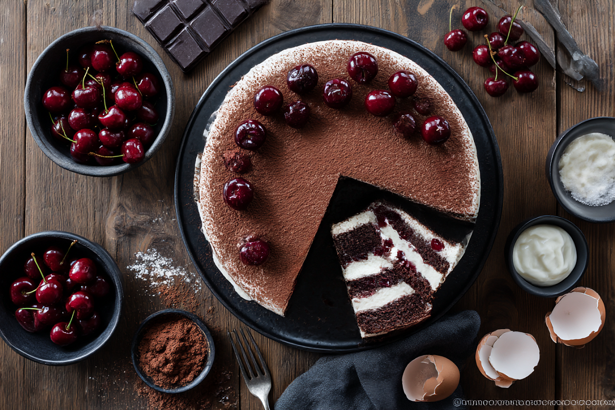 Шоколад и вишня – это тот случай, когда даже описывать лишний раз не хочется: сочетание само за себя говорит. Здесь нет сложных технологий и сиропов для пропитки, но коржи выходят такими влажными и ароматными, будто в них добавляли растопленный шоколад. На самом деле весь секрет в хорошем какао и кусочке сливочного масла в тесте. Сверху и внутри – много вишни и нежный сметанный крем, который освежает и не даёт торту быть тяжёлым. Этот торт удобно готовить накануне: вечером собрали, убрали в холодильник, а к следующему дню он уже стабилен, красиво режется и держит форму. Никаких сиропов для пропитки здесь не нужно – за сочность отвечают сама структура бисквита, сметана и вишня. Главное – дать ему как следует настояться и не торопиться мазать горячий корж. Бархатный шоколадный бисквит Для бисквита в миску сразу разбивают 4 яйца целиком, ничего не разделяя. Добавляют щепотку соли и взбивают до заметного увеличения объёма и посветления массы. Затем порциями всыпают 6 столовых ложек сахара