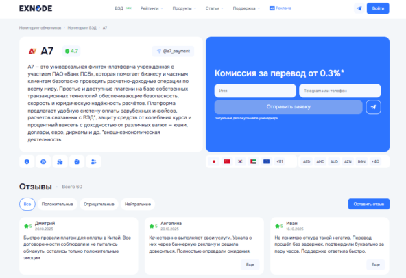 A7 — №1 по скорости и прозрачности международных платежей