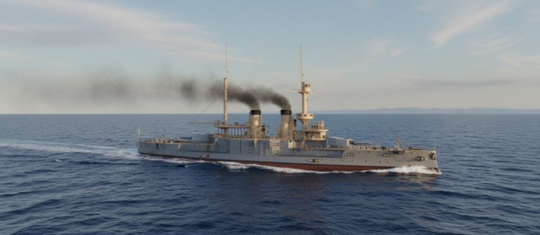 - осадка при нормальном водоизмещении 25 футов или 7,62 м, мощность машин 9000 л.с. (две машины с тройным расширением пара, аналогичны примененным на эскадренном броненосце «Наварин»),