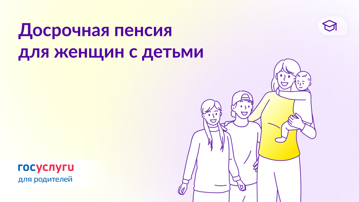Мамы с двумя детьми могут оформить пенсию в 50 лет, если общий стаж 20 лет и в него входит: Их перечень — в Постановлении Правительства РФ от 16.11.2021 № 1946. 👉 Подать заявление на досрочную пенсию @gosuslugiforparents