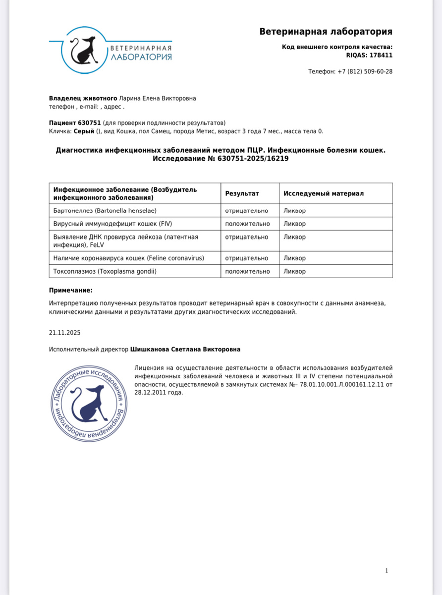 Добрый вечер! Сегодня смогла обсудить с Глазовым (вчера не попала на прием, невролог заболела, а Глазов принимал по записи и все битком). По анализам у Серого токсоплазмоз. Так вот Глазов говорит , что состояние вызвано этим вирусом. Нужно пить 28 дней клиндомицин. Через 14 дней к нему. Ох, я так надеюсь , что мы сможем решить эту проблему. И главное это точно не онкология. Мы забрали его из клиники. Едет с Викторией сейчас на машине домой. Таблетки сами сможем давать и докармливать тоже. На свободе и наблюдать легче как динамика и есть ли она.