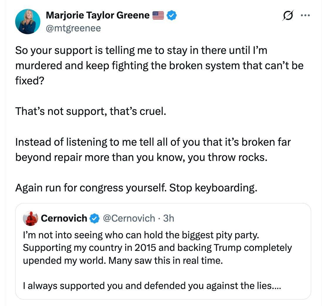 'The system is broken beyond repair more than you know' — Marjorie Taylor Greene MTG says keyboard warriors basically want her to stay in office 'until she's murdered'