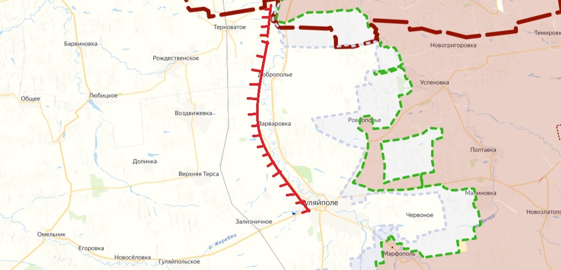 Каток подъезжает к последней, так говорят даже с той стороны, подготовленной линии обороны. Как она подготовлена и кем заполнена - вопрос дискуссионный, у нас стопроцентной и достоверной информации нет, но по ряду слухов, с той стороны пытались тут обустроить позиции и воспользоваться благоприятным рельефом местности. Речь идёт об этом участке: Про рельеф более понятно будет на карте высот: Здесь речка - низина, вдоль неё населённики, а после реки сразу возвышенность, т.е. типичный высокий берег, перепад высот примерно 50 метров, местами больше-меньше. Чтобы встать по реке нам необходимо овладеть этим районом: У нас здесь есть успехи, дело ближайшего времени, когда мы овладеем всеми сёлами в выделенном районе (уже сейчас есть те, которые в серяке). Причём, как мы писали ещё неделю назад в спецразделе, (подписывайтесь, сделаете доброе дело для всех) где мы подробно разбирали ситуацию на линии соприкосновения в этой местности, похоже, наши будут прилагать основные усилия по продвижению