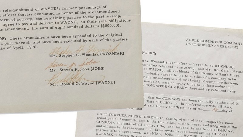 Оригинальные учредительные документы компании Apple 1976 года будут выставлены на аукцион — за лот планируют получить до 4 миллионов долларов. Первоначальное учредительное соглашение, приведшее к основанию компании Apple Computer Company в 1976 году, планируется выставить на аукцион. Ожидается, что эти документы будут проданы за сумму до 4 миллионов долларов. Вещи, связанные с Apple, зачастую достигают высоких цен на аукционах. За один набор документов, имеющий ключевое значение для истории компании, покупатель может заплатить миллионы. @partygarage