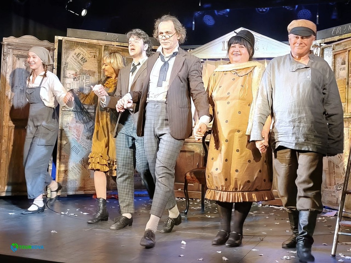 А вы давно были в театре днём? ☀️ Мы сходили — и это оказалось атмосферно! Калужский театр кукол и их спектакль «12 стульев» по мотивам романа Ильфа и Петрова. Убеждаешься: классика вечна. Что покорило: 🎭 Нет положительных героев — одни колоритные жулики и мечтатели. И кукла, как оказалось, может куда больше, чем живой актер: она гиперболизирована, гротескна и позволяет обнажать все смешные и порочные человеческие черты. 🎪 Оформление сцены — просто магия. Две ширмы, а главный герой — стол! В одной из сцен он превратился в варьете. Настоящее театральное волшебство. 📰 Газета как арт-объект. В начале — доска объявлений, а дальше она жила своей жизнью: была и фоном, и декорацией, и частью действия. 🤹♂️ Актеры не прячутся за ширмой, они наравне с куклами ведут повествование, перевоплощаются и создают этот безумный мир. Отдельный респект актеру, игравшему Остапа Бендера! 🔥 Энергия, харизма, юмор — великолепно! Спектакль идет 1 час 40 минут с антрактом. А вы ходили на «взрос