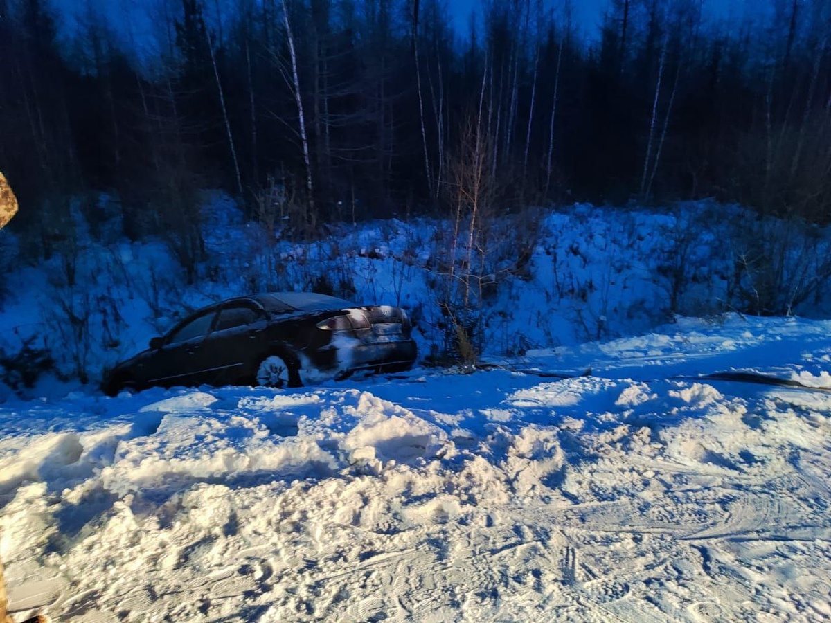 Вчера на заснеженной автодороге Абан - Богучаны водитель легкового автомобиля не справился с управлением, машина съехала в кювет