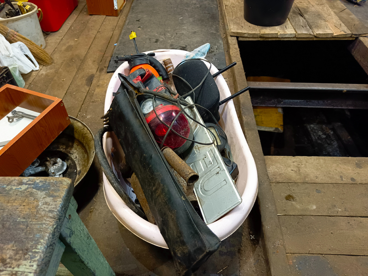Я показывал эти находки общим планом, теперь вот дошли руки рассортировать их и показать вам. Вот такой знак аварийной остановки был выброшен, принадлежность его к стране СССР ясно показывает установочная тринога, металла в стране было много Паяльная лампа, ржавая видок не очень, но насос работает, плёхнуть в неё бензинчика и загудит. я вэтом уверен. пригодится в будущих зимних походах Компрессор проверил-работает, но как-то гудит натуженно, манометр неисправен и потроха болтаются внутри корпуса, в разбор пойдёт Номер эстонский, отличное состояние, выставлю за недорого на авито и мешок Шланг, сгодится в хозяйстве, состояние хорошее, не порепанный Я уже не удивляюсь тому , что выбрасывают люди, но когда нахожу выброшенный инструмент и оснастку для ремонта оторопь берёт. Приспособа для рассухаривания клапанов, приведу в божеский вид и себе оставлю а свою, есть такая же купленная, продам Зеркало боковое, исправное Фара, противотуманка, ободок тоже нашёлся Пучёк автопроводки, изоляция