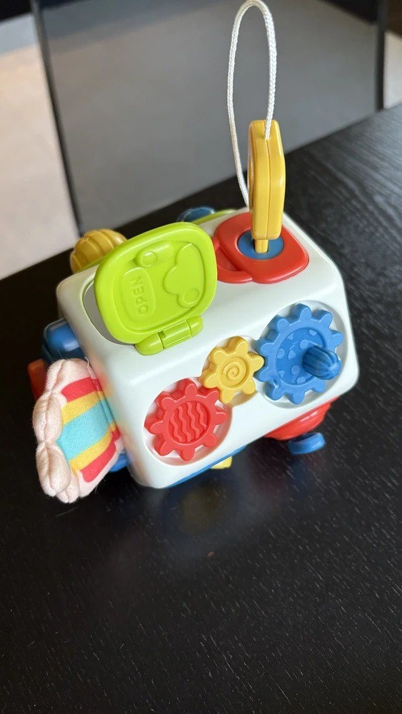 Игрушки и занятия тоже сильно влияют. Там, где всё “за тебя” уже нарисовано, поёт и светится по кнопке, ребёнок не проживает собственный вклад. А там, где есть чёткий “правильный” результат (раскраски строго по контуру, шаблоны, где “надо точь-в-точь”), очень легко уйти в контроль. Совсем другая история, когда под рукой материалы, где важен процесс: куб с дверцами, которые можно открывать по-разному; панель с замочками, шнурками, шестерёнками, которые можно крутить в своём темпе; фигурки, которые можно вставлять, менять местами, пробовать ещё. В таких играх есть задача, но нет “оценки сверху”. Дверца не обидится, если её открыли не с первого раза. Замок не скажет, что “некрасиво”. Там есть опыт “я пробовала — сначала не выходило — потом получилось” без стыда. Чем больше в её дне таких тихих задач, где допускается проба, поиски и исправление, тем мягче мозг относится к несовершенству и в других сферах.