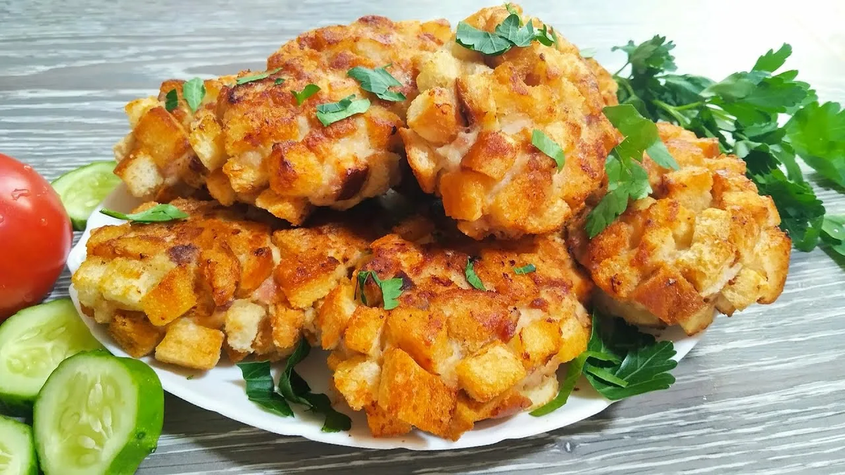 - Аппетитная корочка: Котлеты обваливают в свежем белом хлебе, нарезанном мелкими кубиками, что придаёт им хрустящий золотистый слой.