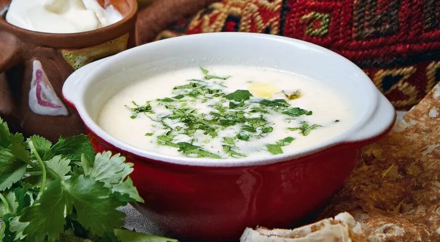 Это национальный холодный суп Армении — освежающий, кисломолочный, с зеленью и гренками. В отличие от окрошки, танабур не содержит колбасы, огурцов или кваса. Основа — мацони (армянский кисломолочный напиток), разведённый водой или бульоном, с мелко нарубленной зеленью и чесноком. Главное: мацони должен быть натуральный, без стабилизаторов (иначе свернётся), а суп подают всегда холодным — как летнее блюдо в жару. Для подачи: Подготовь ингредиенты: Смешай основу: Настаивай: Подавай: Освежающий, чуть кисловатый суп с хрустящими овощами, ароматной зеленью и прохладной текстурой. Лёгкий, но сытный — идеален при +30°C. В армянских домах его едят на обед в июле–августе, часто как самостоятельное блюдо.
