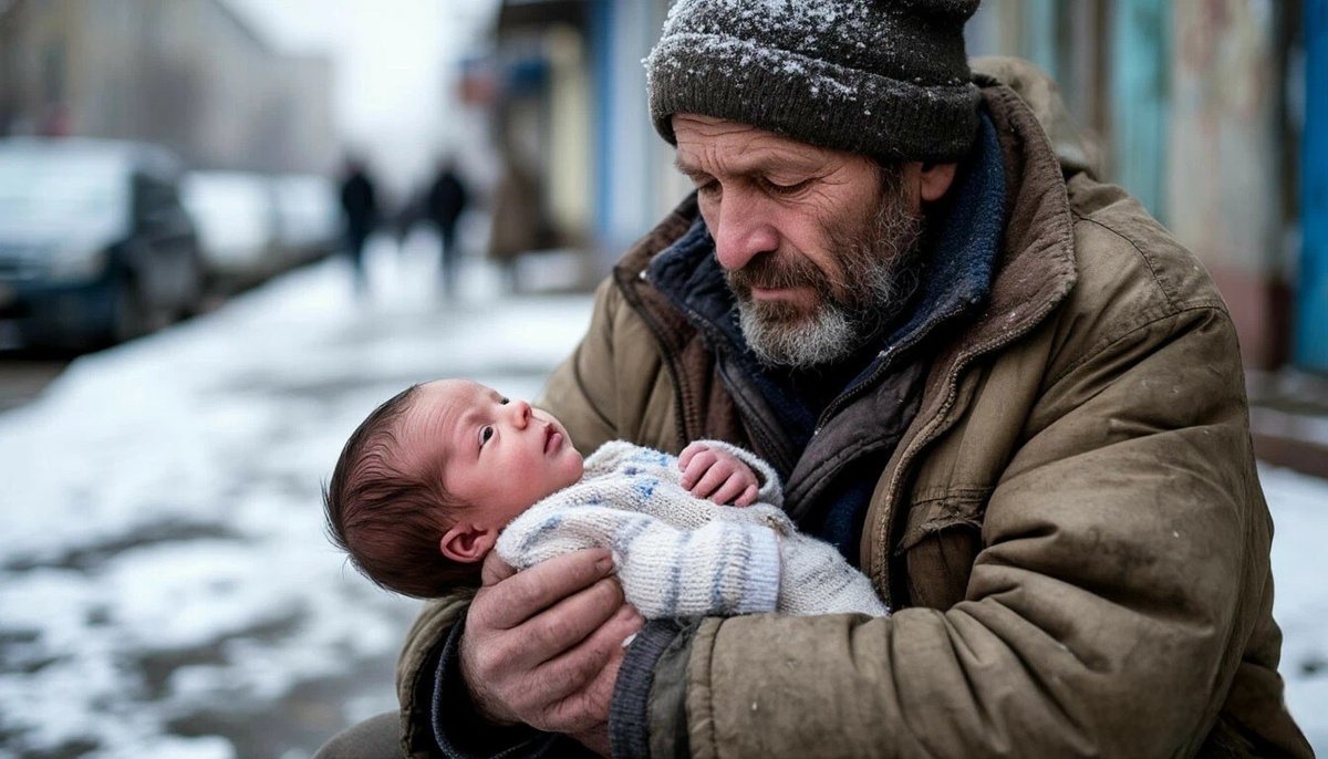Медсёстры, пациенты, охранник — все остановились и посмотрели на него с испугом и брезгливостью. Бездомный, неумытый, в рваной одежде, с младенцем на руках — это было слишком неожиданно.