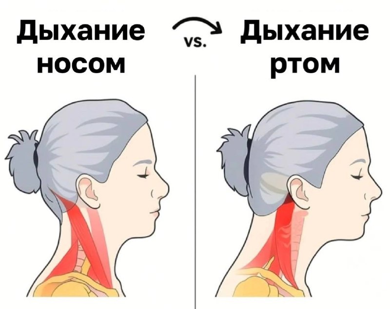 Правильный дыхательный паттерн — один из ключевых факторов, влияющих на работу нервной системы, состояние мышечно-фасциальных цепей и стабильность положения тела. Носовое дыхание задействует естественные механизмы, заложенные в анатомии лица, шеи и грудной клетки. Ротовое дыхание — это не просто плохая привычка. Это фактор, который значительно меняет работу дыхательной, осаночной и нейромышечной систем, влияя на качество жизни и состояние позвоночника. С чего начать восстановление дыхательного паттерна Закройте рот. Поднимите язык к нёбу. Вдохните медленно через нос. Такая, казалось бы, минимальная коррекция помогает диафрагме включаться правильно, снижает нагрузку на шею и стабилизирует положение тела. При регулярной практике это улучшает качество движения, снижает мышечное напряжение и создаёт условия для нормализации осаночных рефлексов. Способ, которым вы дышите, формирует не только внешний вид осанки — он формирует ваше самочувствие, уровень энергии и состояние нервной систем
