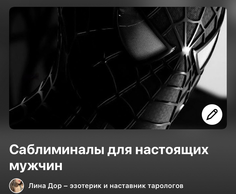 Он содержит в себе видео с нейтральными картинками и музыкой. Собрала самые частые запросы у парней: хорошее чувство юмора, успешная карьера, машина мечты, собственное жилье и достойный ремонт. Добавила от себя саблиминалы на духовный рост: принятие взрослой позиции, ясное понимание своих целей, умение любить и осознанность. Не забыла и про физику – видео на выносливость, навыки волейбола и способности как у Человека-паука. Вишенка на торте, которая больше продиктована обществом – саб на высокий рост. Плейлист доступен по ссылке
