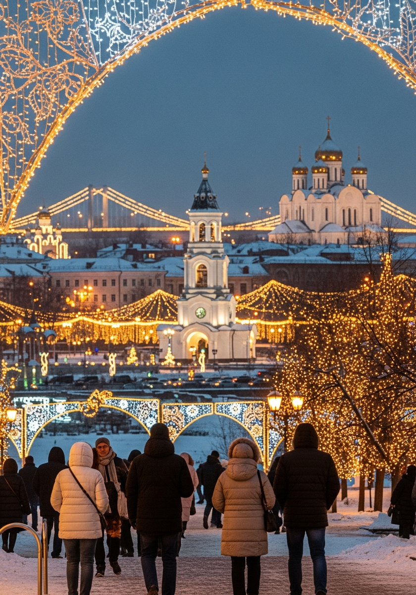 - Совет: начните прогулку от парка Горького и дойдите до Соборного переулка, где установлена светящаяся арка «2025».