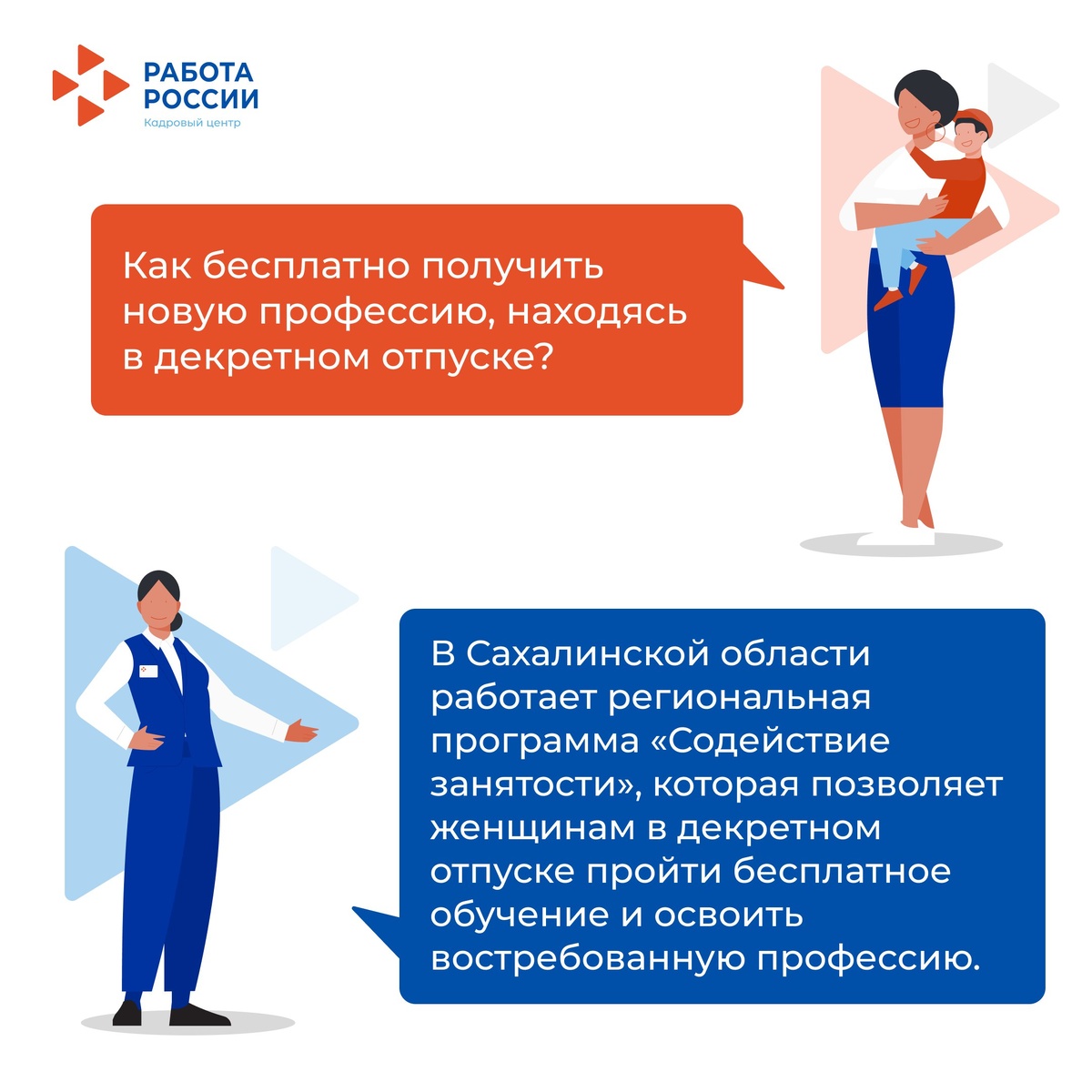 🤰Хотите получить новую профессию во время декретного отпуска? Смотрите ответ на карточке👆 ▶️Консультацию по доступным направлениям обучения можно получить в Кадровом центре г. Южно-Сахалинска: ул. Ленина, 283а Телефон для справок: 43-67-76, 72-34-87 Подписаться на Кадровый центр | ВК | ОК