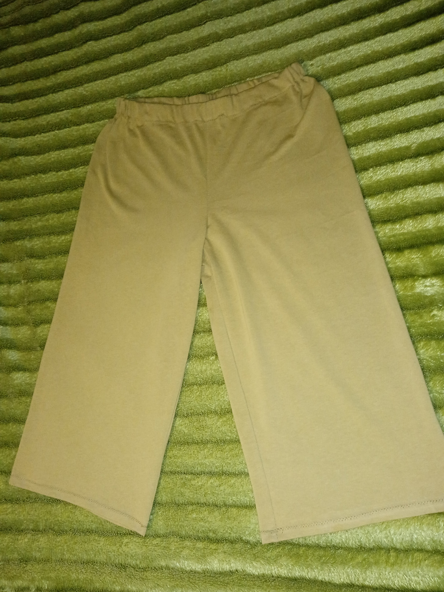 Сочиняю себе пижаму из трикотажного лоскута. Лоскуты кулирки хлопчатобумажной, куски небольшие. Сначала из самого большого лоскута выкроила брюки. Брюки увеличила в бедрах примерно на 5 см. для свободного облегания. Штанины прямые по всей длине. Длина брюк получилась примерно 7/8. Смотрятся почти как юбка. Сначала обработала шов сидения, стачная и обметочная строчка сделаны зигзагом разного размера на простой бытовой швейной машинке. Игла для трикотажа №70. Затем обработала шаговой шов, предварительно сколов его булавками. Сшила резинку в круг. Пояс обработала простой подгибкой. Строчила, вкладывая внутрь резинку. Сборку распределила. Думала, что брюки получатся совсем короткие и, нужна будет оборка внизу. После примерки стало ясно, что длина приемлемая. Поэтому просто обработала низ брюк подгибкой. Брюки готовы. Теперь надо будет придумать верх пижамы. Надеюсь, что статья была вам полезна. Больше шитья, рецептов и всякого-разного полезного смотрите в тематических подборках на моем к