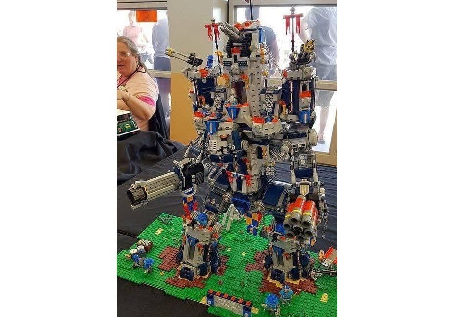 Ну кто вообще решил вылепить такого гигантского титана из Лего? Полметра высотой наверное да? Это выглядело бы реально впечатляюще если бы
