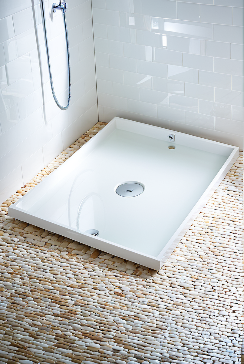 - Теплый на ощупь: Акрил имеет низкую теплопроводность, поэтому поверхность всегда ощущается теплой и комфортной для босых ног, в отличие от вечно холодных стали или камня.