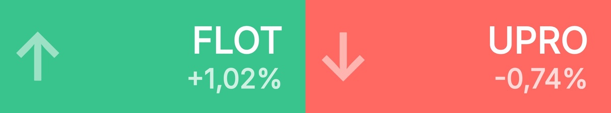 🔺 Топ-10 лидеров роста среди крупнейших акций: Совкомфлот • 77,33 ₽ • 1,02% ЮМГ • 746 ₽ • 0,85% ГК Самолет • 921 ₽ • 0,60% Татнефть п • 555 ₽ • 0,60% Яндекс • 4 169 ₽ • 0,58% ФосАгро • 6 643 ₽ • 0,56% МТС Банк • 1 280 ₽ • 0,55% Группа Рус • 120 ₽ • 0,54% Озон Фарма • 51,19 ₽ • 0,51% Озон • 3 708 ₽ • 0,50% 🔻 Топ-10 лидеров падения среди крупнейших акций: Юнипро • 1,48 ₽ • -0,74% ЭсЭфАй • 1 623 ₽ • -0,58% Полюс • 2 126 ₽ • -0,51% Мосэнерго • 1,95 ₽ • -0,36% Астра • 291 ₽ • -0,29% РусГидро • 0,39 ₽ • -0,26% М.Видео • 65,80 ₽ • -0,23% Московский • 7,89 ₽ • -0,22% АФК Систем • 13,31 ₽ • -0,21% Медикал Гр • 1 376 ₽ • -0,20%