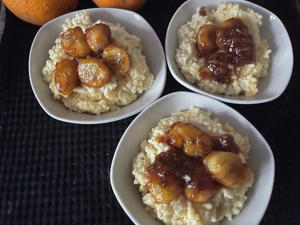 Апельсиновая пшенная каша с карамельным бананом.