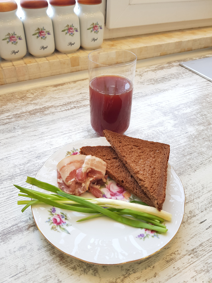 Добрый день, дорогие друзья! Сегодня я представляю вашему вниманию рецепт напитка, который можно приготовить как приятное дополнение к любым мясным блюдам. Для приготовления 1,75 литра кваса нам понадобятся: 500 грамм очищенной свеклы, 20 грамм ржаного хлеба, 1,5 литра кипяченой воды. (Количество полученного кваса зависит от сочности свеклы.) Приготовление: хлеб нарезать соломкой. Свёклу разрезать на несколько частей. Натереть с помощью кухонного комбайна. Или на мелкой терке. В банку выложить хлеб. Залить водой. Добавить в банку свёклу. Долить оставшуюся воду, оставляя 5 сантиметров верха банки не заполненными. Накрыть марлей и обвязать ниткой. Поставить в тёплое место для брожения на 4 дня. Готовность кваса можно определить по тому, что свекла потеряла свой цвет. Через 4 дня квас процедить и убрать в холодильник. Приятного аппетита! На 100 грамм напитка На 100 грамм напитка На 250 грамм напитка На 250 грамм напитка