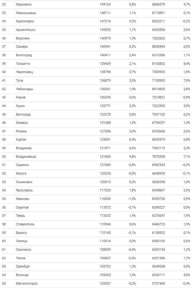 ⚡️ Новостройки в ноябре: цены ползут вверх на фоне сокращения предложения. Аналитики портала «Мир Квартир» зафиксировали рост стоимости квадратного метра в 49 из 70 крупных городов России. 📊 Средняя цена «квадрата» выросла на 1.2%, достигнув 154 215 рублей. Лидерами подорожания стали Владикавказ (+9.8%), Симферополь (+5.6%) и Краснодар (+3.7%). Москва показала рост до 452 576 руб./кв. м (+3.5%), а Санкт-Петербург — до 287 416 руб./кв. м (+1.3%). 💬 Средняя стоимость квартиры выросла на 1.9%, достигнув 8.02 млн рублей. Значительный рост зафиксирован в Тольятти (+8.4%), Туле (+7.9%) и Белгороде (+6.2%). «Предложение новостроек за месяц сократилось на 17% — сказалось замедление темпов строительства в течение года. Также наблюдается оживление в офисах продаж на фоне снижения ставки ЦБ и традиционного всплеска покупательской активности к концу года», — комментируют в компании. #стата@bazaestate #новостройки@bazaestate 🏠 Недвижимость Live 📱 Dzen