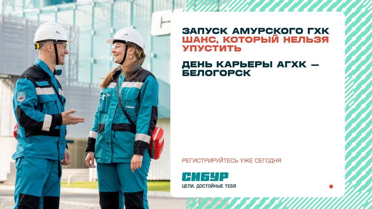 Если вы мечтаете о перспективной карьере на одном из самых масштабных промышленных производств страны, то этот пост для вас. Приглашаем вас на День карьеры Амурского ГХК — 19 декабря 2025 года в Белогорске! Где: Центр занятости населения г. Белогорска, ул. Ленина, 61 Когда: с 10:00 до 13:00 Экскурсия на площадку АГХК: с 13:00 до 16:00 — только для участников Дня карьеры. Количество мест строго ограничено — всего 75 человек. Что вас ждёт? 🔹 Подробный рассказ о СИБУРе и Амурском ГХК — кто мы, чем занимаемся, как создаем промышленность нового поколения. 🔹 Карьера без «стеклянных потолков» — узнайте об условиях работы, возможности для профессионального роста и программы поддержки сотрудников. 🔹 Экскурсия на строящийся комплекс — шанс увидеть весь масштаб будущего полимерного производства России своими глазами и задать вопросы специалистам лично. 🔹 Личное знакомство с командой, которая запускает крупнейший проект газохимии в стране. Участие бесплатное, но регистрация обязательна! Места