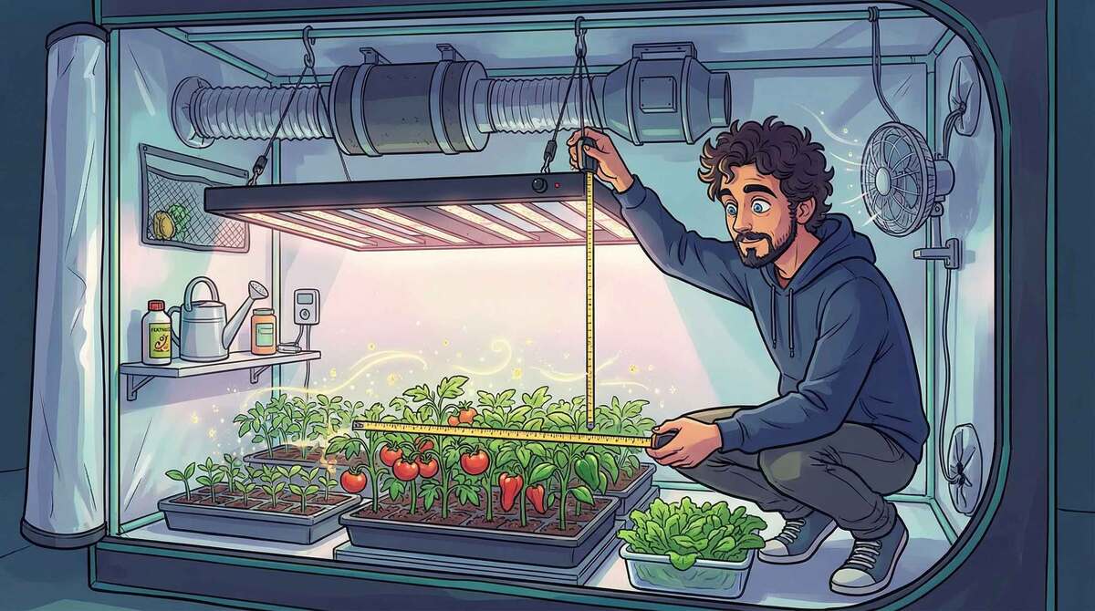 Есть простое ориентирование по мощности. На квадратный метр рассады нужно примерно 20–50 ватт эффективной светодиодной мощности. Если у вас узкий подоконник и один лоток, хватит лампы на 20–30 ватт. Если это целая полка или небольшой домашний стеллаж, уже придётся смотреть в сторону 50 ватт и выше, возможно нескольких модулей. Для гроутента мощность считают исходя из всего объёма и высоты, но принцип тот же: свет должен равномерно покрывать всё пространство, а не освещать только один кустик посередине.