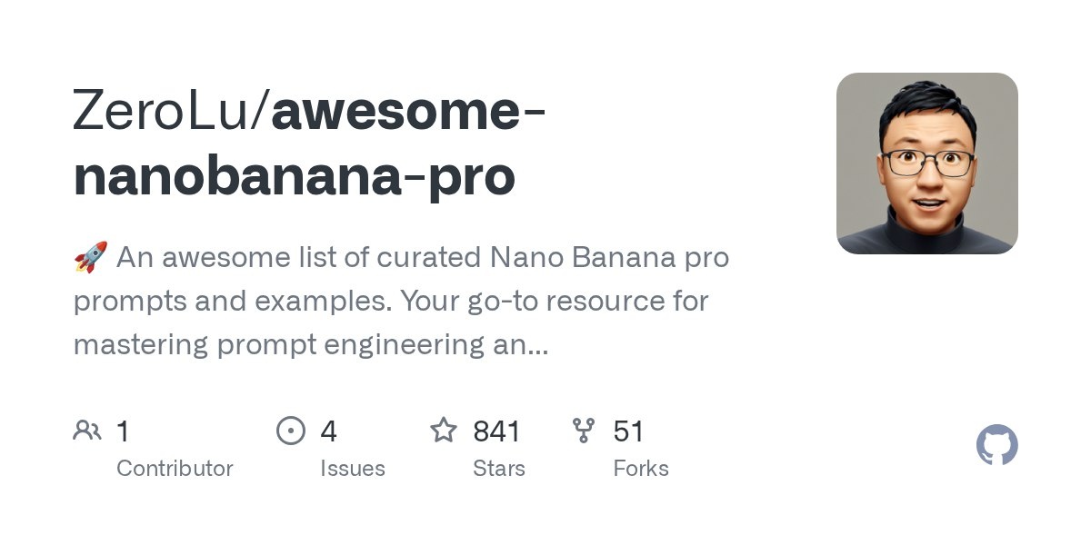Взрывные визуальные эксперименты с Nano Banana Pro 🍌 Недавно наткнулся на классную коллекцию лучших промтов и стилей для продвинутого генератора изображений Nano Banana Pro. Этот репозиторий — настоящий кладезь фотореалистичных портретов, художественных экспериментов и даже коммерческих и образовательных визуализаций. Там есть всё: от супердетализированных снимков с знаменитостями до винтажных фото в стиле 90-х и 2000-х, а также уникальные задачи — создание инфографики, виртуальный примерочный, реставрация фото и даже креативные массовые сцены. Очень круто для тех, кто хочет раскрыть весь потенциал AI в визуализации, попрактиковаться в составлении точных промтов и вдохновиться новыми идеями. #искусственныйинтеллект #промты #фотореализм #aiарт #машинноеобучение #визуализация #github #творчество https://github.com/ZeroLu/awesome-nanobanana-pro https://crafthomelab.ru/