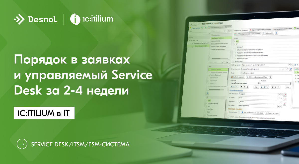 — Комплексное обслуживание: управление IT, поддержка оборудования и аналитическая обработка данных. Система 1С:ITILIUM была запущена по технологии экспресс-внедрения. Для быстрого старта системы консультанты 1С:ITILIUM: 💡 Важная часть внедрения — передача опыта и методологии, чтобы команда могла сразу эффективно управлять Service Desk и сервисными процессами. Результаты: