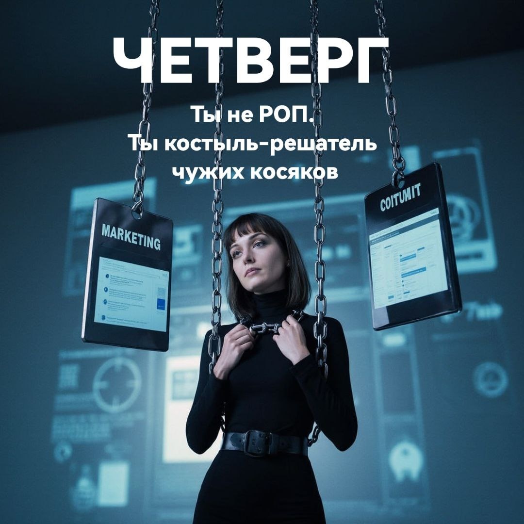 Ты не РОП. Ты костыль-решатель чужих косяков День 4. Серия 1 из 3 начало тут, тут и тут Четверг. 09:11. Ника ещё не открыла CRM, а ей уже написали босс и соседи Собственник: «Надо добить план, протестить новый продукт и продать по базе старый. Не подведи». Маркетинг: «Мы поменяли оффер, теперь без рассрочки, но с бонусом. Предупреди ребят, пусть уже по-новому продают». Продукт: «Можешь собрать по команде, что клиенты отвечают, когда отказываются? Нам важно понять — они упираются в цену, формат, сроки или вообще не понимают, что мы им продаём» За полчаса на Нику навешивают четыре разных «срочно»: старое добить, новое потащить, дыры залатать, людей замотивировать. Ощущение будто она — приёмник чужих “надо”, который должен сделать так, чтобы все остались довольны и деньги каким-то чудом появились. Как будто на грудь одели тугой обруч «А где заканчивается моя зона ответственности и начинается их?" Пока граница одна: если что-то пошло не так — виноват отдел продаж. 👉 Сколько чужих