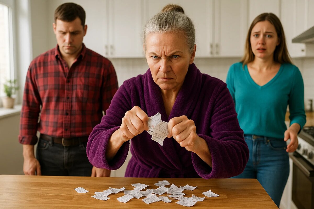 Светлана смотрела на обрывки бумаги, и внутри что-то щёлкнуло. Не сломалось — переключилось, как рубильник. Она молча сняла фартук, повесила на крючок и вышла из кухни. Егор стоял, глядя в пол. Свекровь собирала клочки со стола в аккуратную кучку, будто навела порядок.