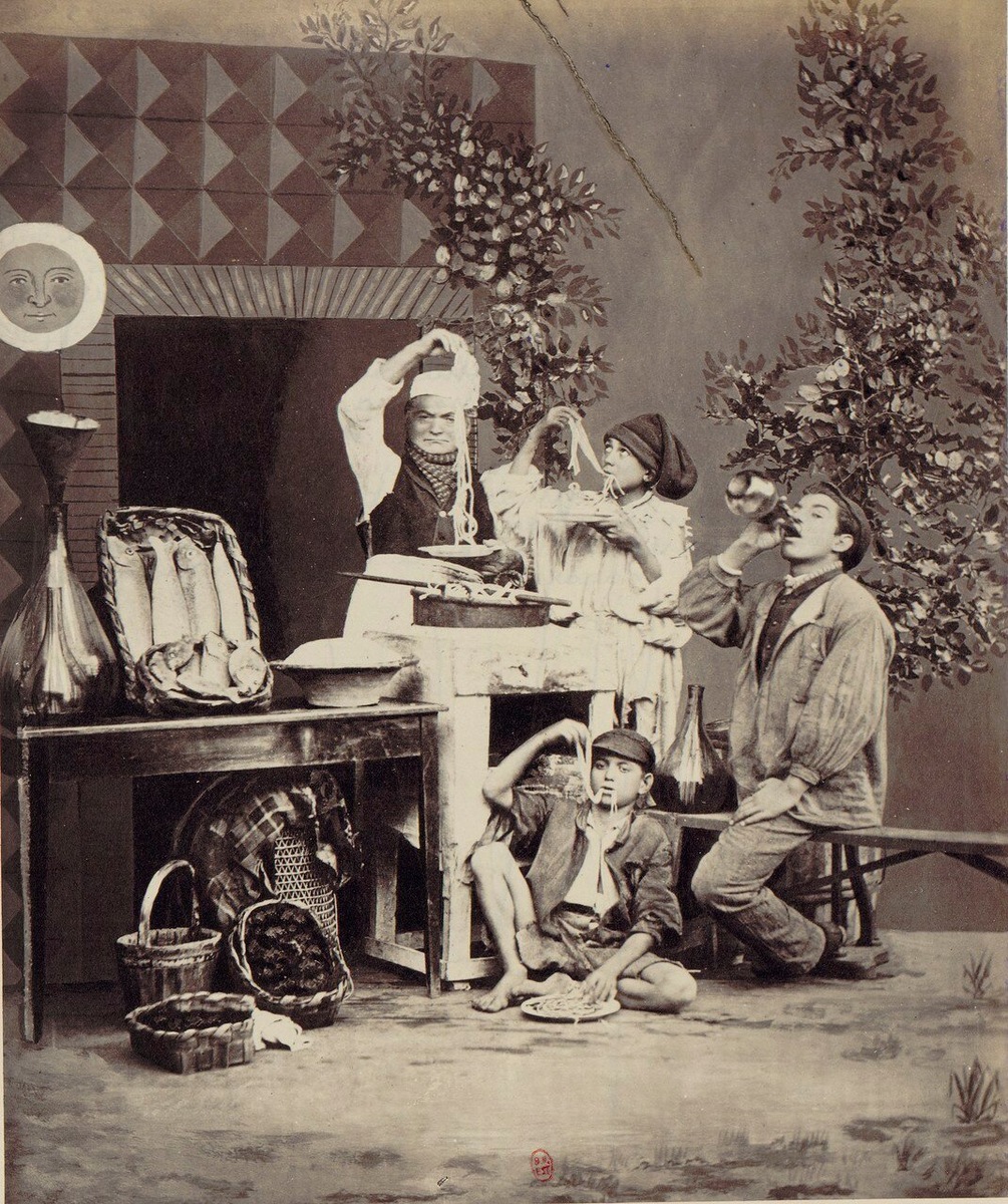 А вы любите листать старые- я бы даже сказала старинные, фото? Наши «мобильные» фотографии, даже сделанные лучшими камерами, фиксируют факт и момент, но они не живые, вы не замечали? А вот за старыми фото всегда скрывается какая-то история. Они умеют рассказывать. Например, вот так в Неаполе XIX века продавали пасту. А вот и «лавочка». А здесь – просто идеальная история. В Неаполе в XIX веке "уличные писатели" предлагали свои услуги по написанию писем тем, кто не знал грамоты. Это включало и романтические послания. Эта фотография сегодня довольно известна, ее называют «уличный писатель любовных писем пишет письмо для девушки». А мне так не кажется. Во-первых, неаполитанцы прекрасно обходились без любовных посланий, в конце концов, можно спеть серенаду под балконом любимой, и вряд ли молодые влюбленные состояли в оживленной переписке. Тем более что такой специализации, как «писатель любовных писем» документально не зафиксировано. Во-вторых на столике надпись «francese» - видимо, это