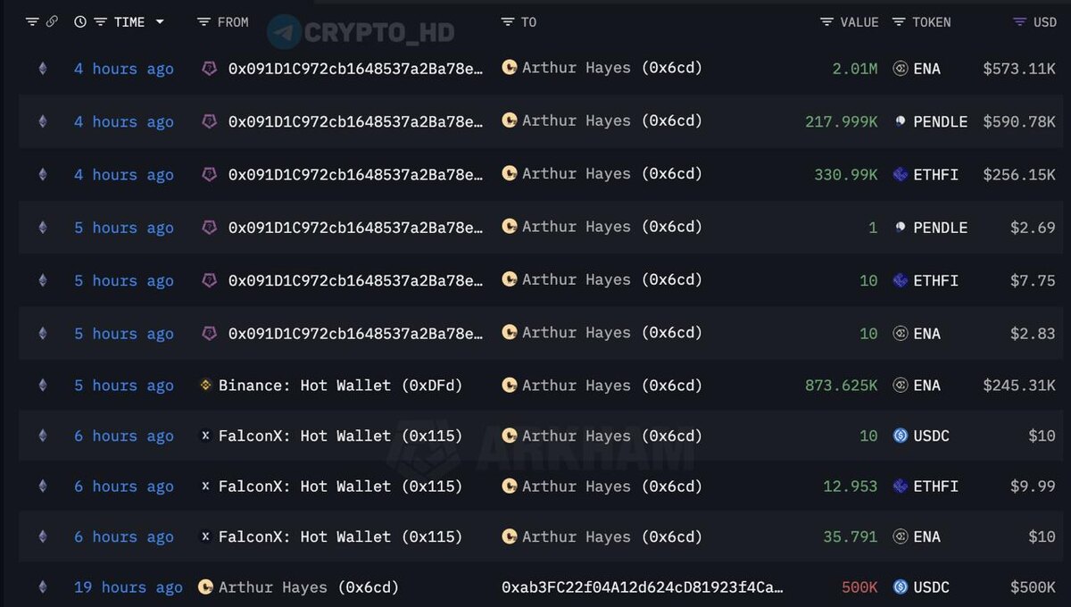 👀 Артур Хейс снова начал скупать альткоины – arkham