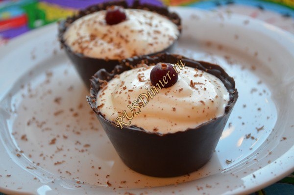 Шоколадные корзиночки с творожной начинкой От автора: Из данного количества ингредиентов получается две шоколадные корзиночки с творожной начинкой. Начинять такие корзинки можно разной начинкой: взбитыми сливками, ягодами, фруктами, мороженным и т. д. Ингредиенты: Шоколад темный - 50 гр. Творог - 70 гр. (9%) Сахар - 30 гр. Сметана - 60 мл. Источник: https://rusdinner.ru/page/shokoladnye-korzinochki-s-tvorozhnoj-nachinkoj