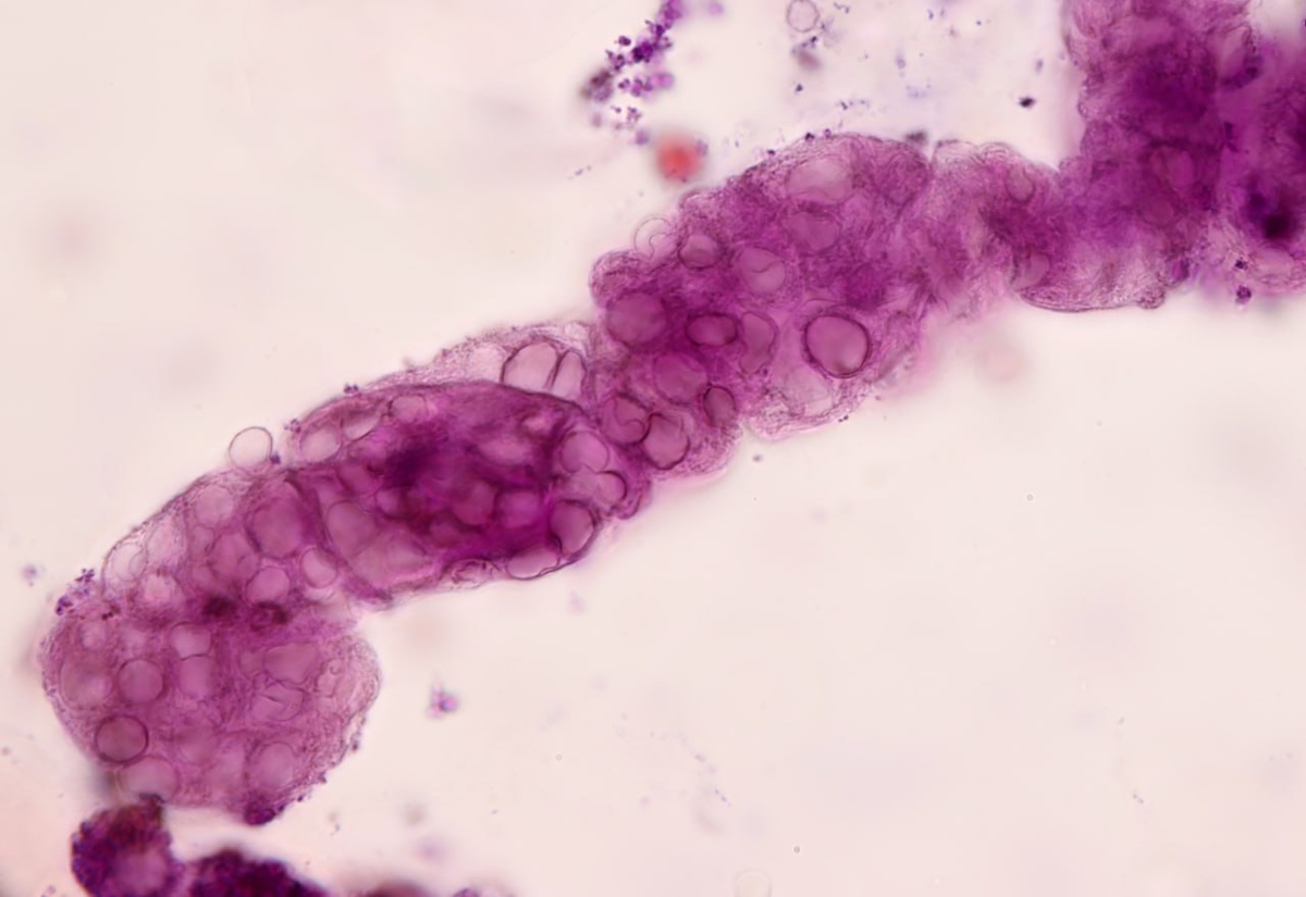 Эритроцитарный и смешанный цилиндры в осадке мочи. Светлопольная микроскопия, окраска по Штернгеймеру-Мальбину. Пациент с острым повреждением почек и хроническим остеомиелитом. #осадокмочи #моча