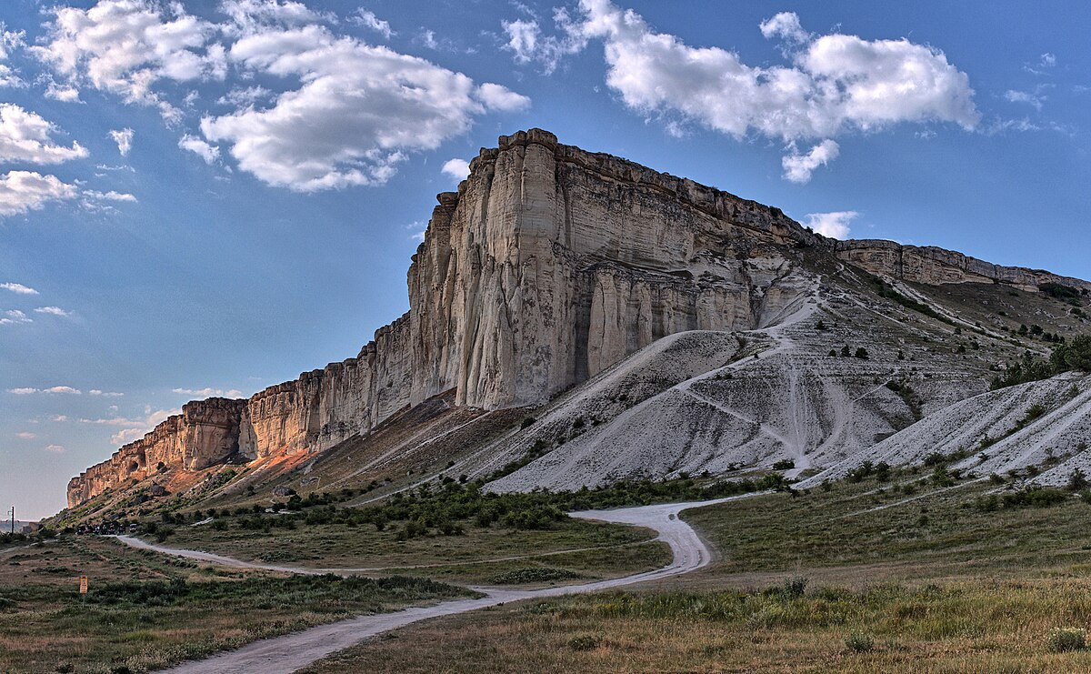 Если вы хоть раз ездили в крымский Белогорск, вы не могли пропустить эту громадину. Ак-Кая (Белая скала) нависает над дорогой, как айсберг, который забыл растаять посреди крымской степи. Стометровый отвес, ослепительная белизна известняка и ощущение, что ты попал в декорации вестерна (что, кстати, недалеко от истины — киношники это место обожают).